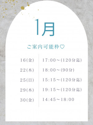 【1月シフト&ご案内可能枠 最新版!】