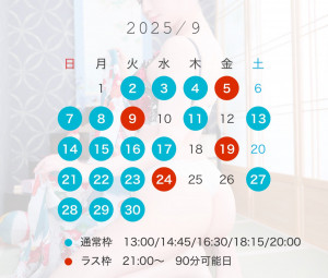 9月出勤予定表📢💓