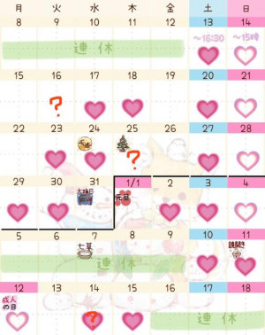 シフト(12~1月)ちょこっとお礼